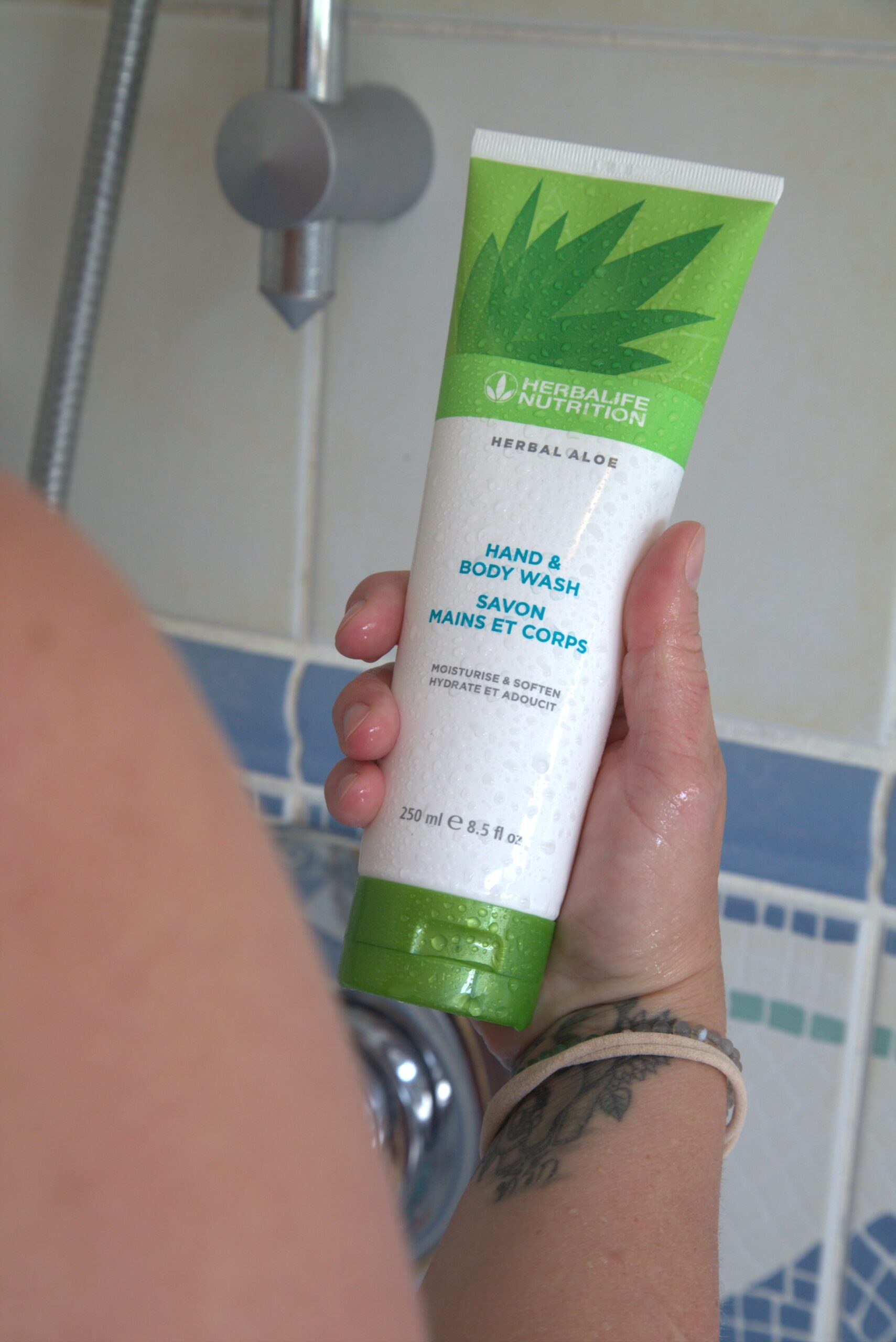 Gib eine kleine Menge Herbal Aloe Hand & Body Wash auf die nasse Haut und schäume sie sanft ein. Gründlich ausspülen.